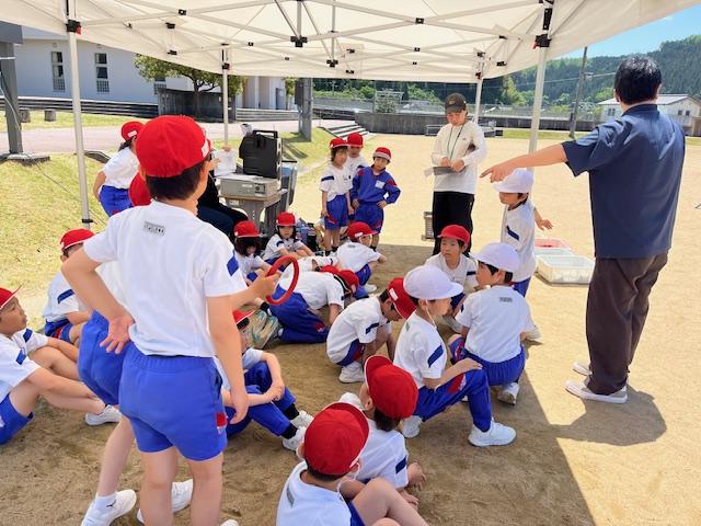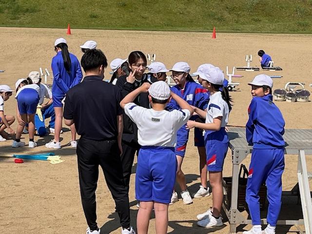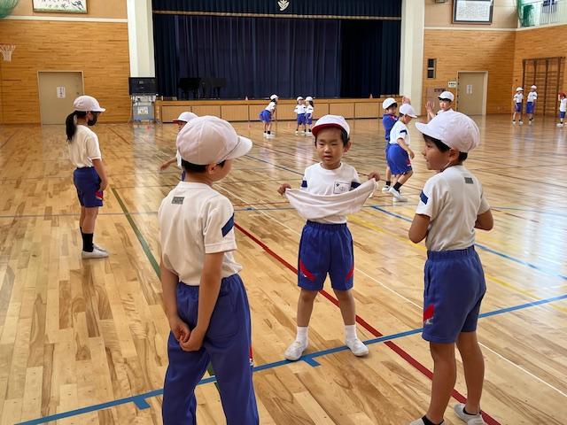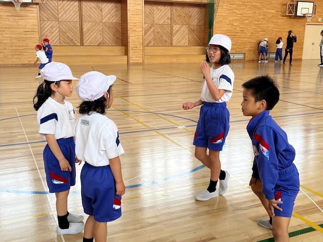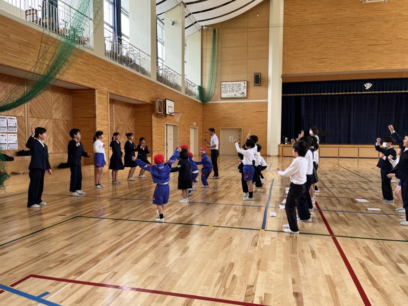 6年生が考えた応援を教えてくれ、一緒にやってみました。