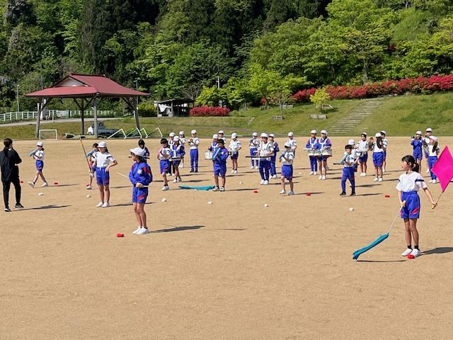 グランドでの鼓笛の練習。熱中するあまり、倒れないかと思うくらい集中して取り組んでいたやなぎっ子。