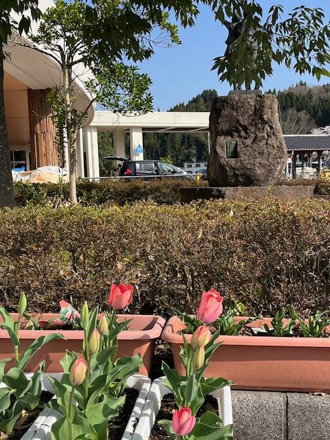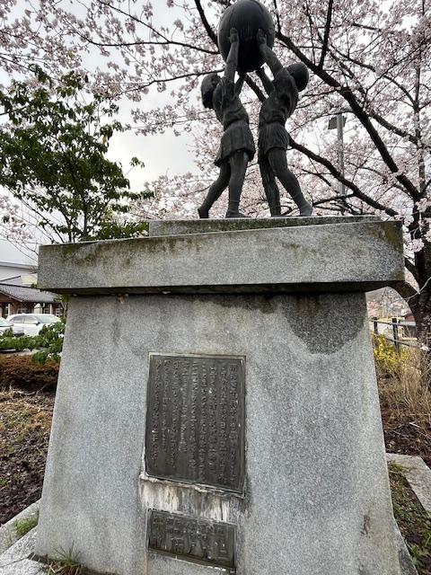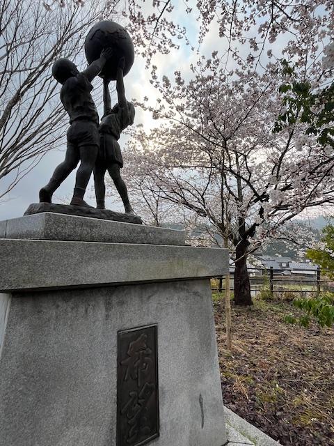 この週末、柳田小学校周辺の桜が満開になりそうです。ちょっと散歩してみて、この銅像がどこにあるか発見してください!