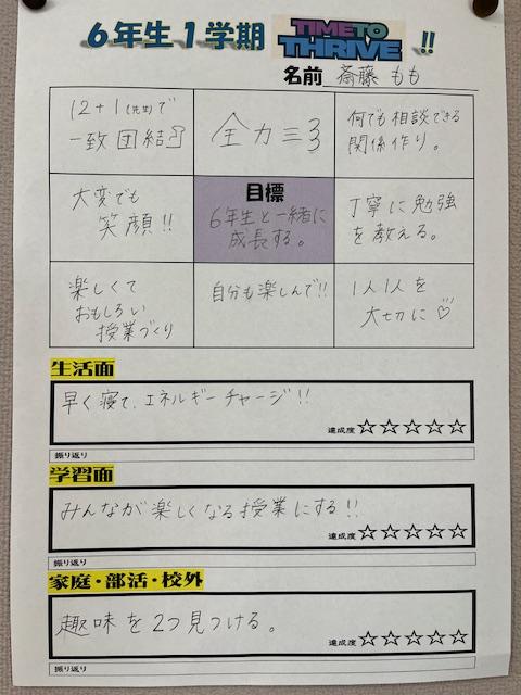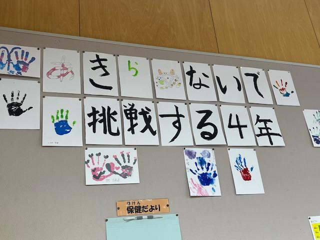 4年生は新たな歴史を創り上げるべく、今年度の学級目標が掲示してありました!名言の1つ『成功の反対は失敗ではなく、挑戦しないこと』って、聞いたことがあります。4年生は挑戦するから、大丈夫だね(^^♪