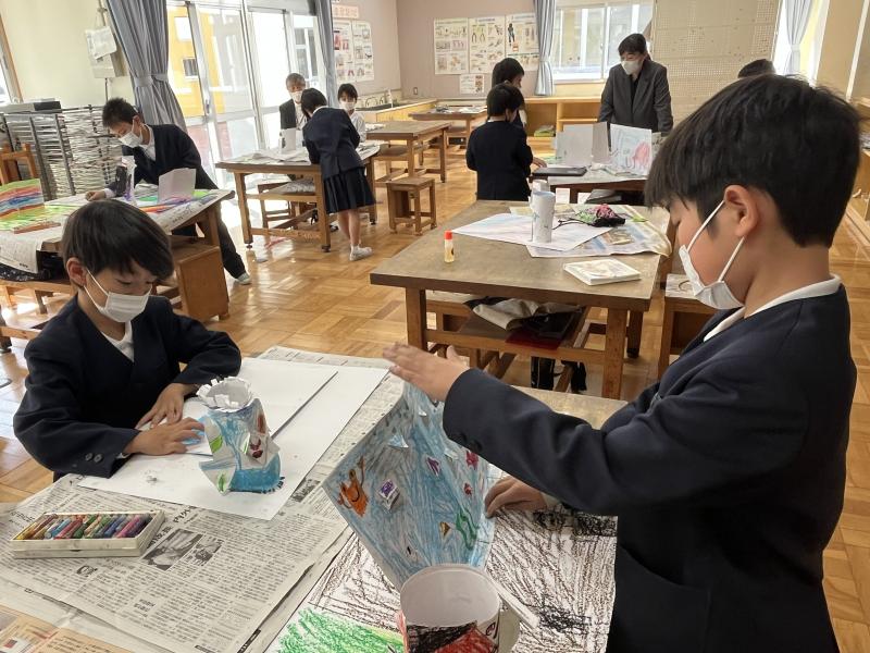2年生の図工の時間。画用紙に素敵な絵がかいてありました(^^♪