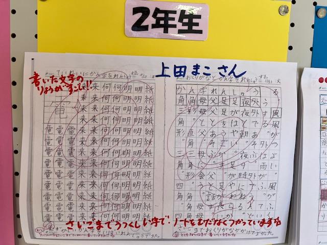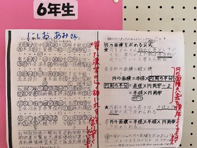 写真は、その自学ノートの一部。各学年のものが掲示してあります。
