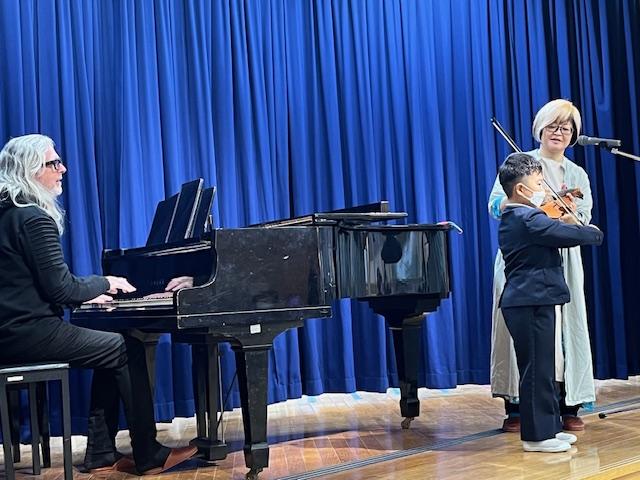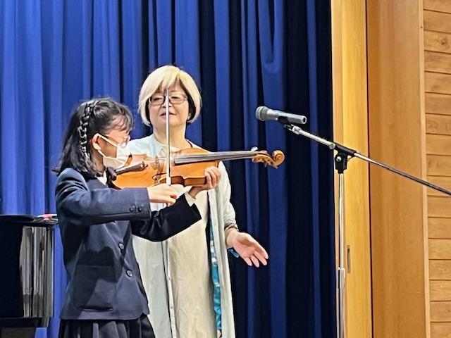 1年生が上手にキラキラ星の演奏をしていました。練習の成果を見てもらうため、担任の髙野先生が招待されていたようです。