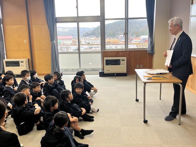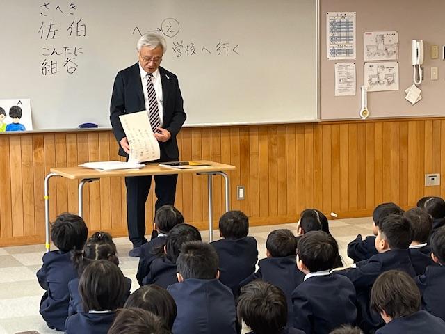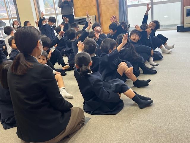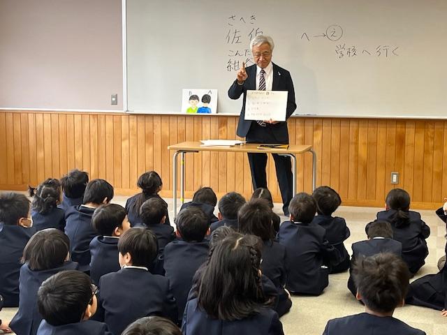 今日の2時間目。1年生~3年生までの全員が一緒に、佐伯先生からお話を聞きました。