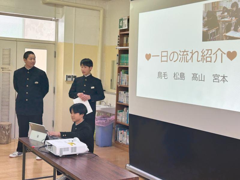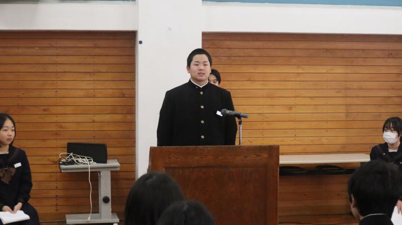 時兼先生中越先生浦本先生生徒会長の歓迎の挨拶