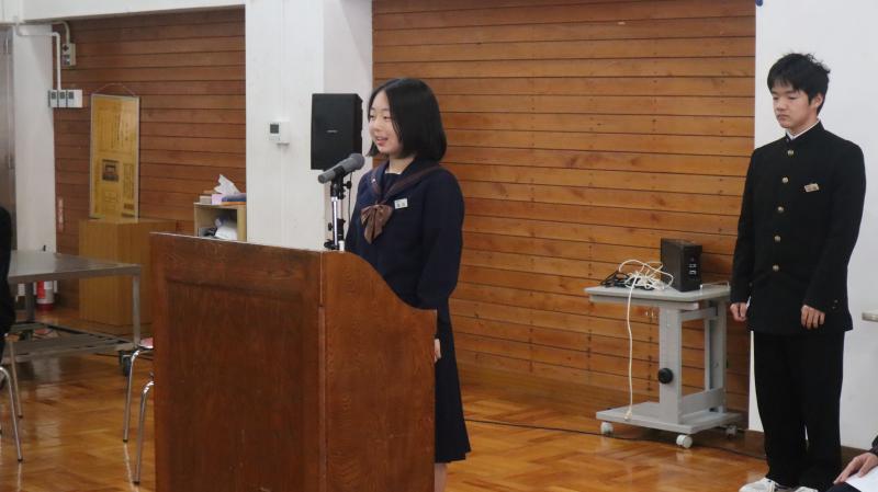 生徒会長松島さんの歓迎の言葉新入生四谷さんの誓いの言葉