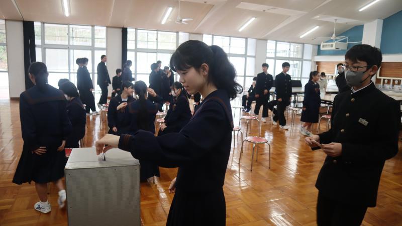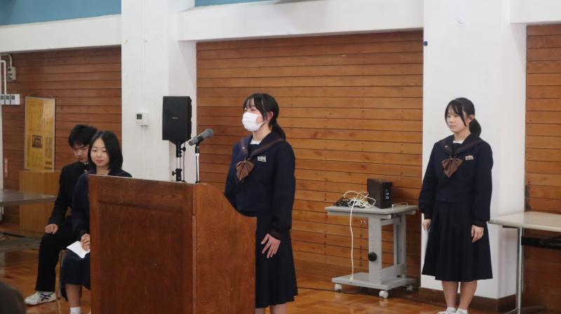 3月17日、令和7年度前期生徒会役員立ち会い演説会・投票が行われました。どの候補者も、役員になったときにやりたいことを具体的に述べていました。前期生徒会役員のはたらきがとても楽しみです。がんばれ!