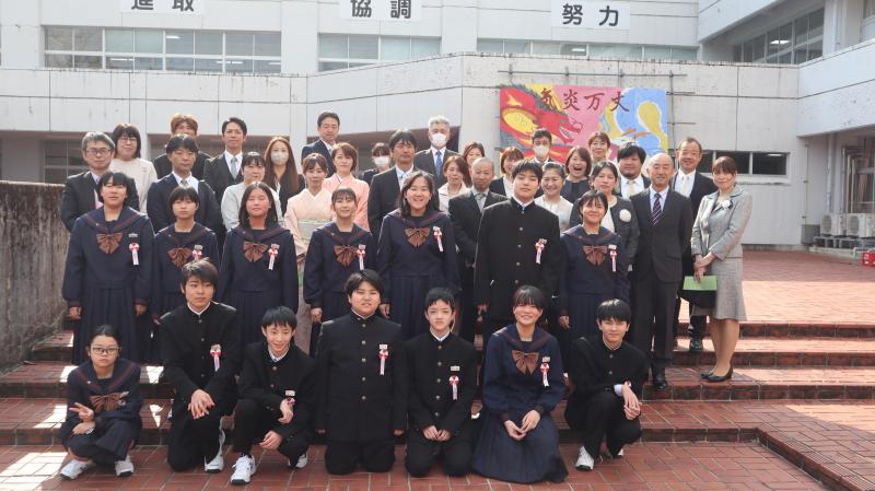 卒業生入場卒業証書授与卒業証書授与卒業証書授与祝辞 副町長 田代 様祝辞 PTA会長 千徳 様送辞答辞別れの歌「群青」別れの歌卒業生退場最後の学活担任の涙卒業生、3年の先生方