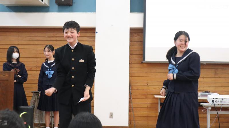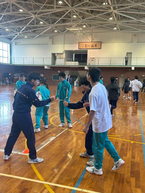 柳田中学校生徒会と東陽中学校生徒会が合同で企画し、20日クリスマス会が行われました。柳田中と東陽中の生徒が合同で縦割り班をつくり、班対抗でレクレーションを行いました。とても盛り上がる楽しい会になりました。