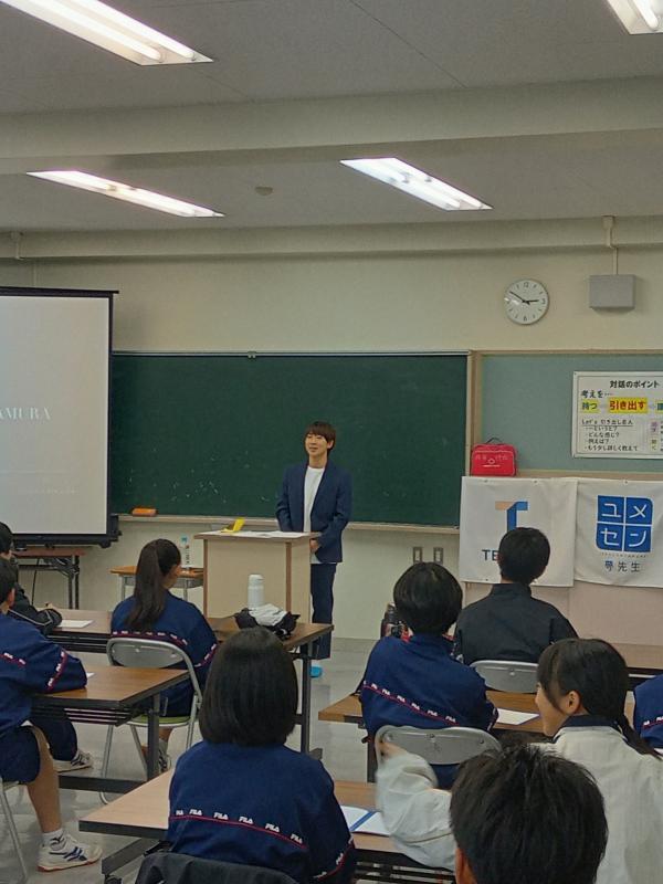夢先生として元Jリーガー中村駿介さん、アシスタント川邊隆弥さんが授業をしてくれました。