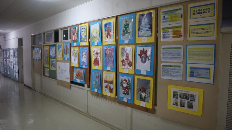 昨日からウクライナの子どもたち(中学生ぐらい)の絵画22点を展示しています。ウクライナの子どもたちも大変な環境の中で生活していますがそのようなことを感じさせないような絵画ばかりです。絵を見て生徒達が何かしら感じとってもらえたらと思います。とても素敵な絵ばかりです。地域の皆様、良かったら絵を見にきませんか。