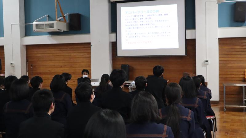 能登半島地震から1年がたとうとしています。スクールカウンセラーと相談して、正月を迎えるにあたり、気分が悪くなったり体調を崩したりするアニバーサリー反応がでてくる場合があるということ、そのようなことは誰にでも起こりうることであり、大きく心配することではないという趣旨のお話をしました。