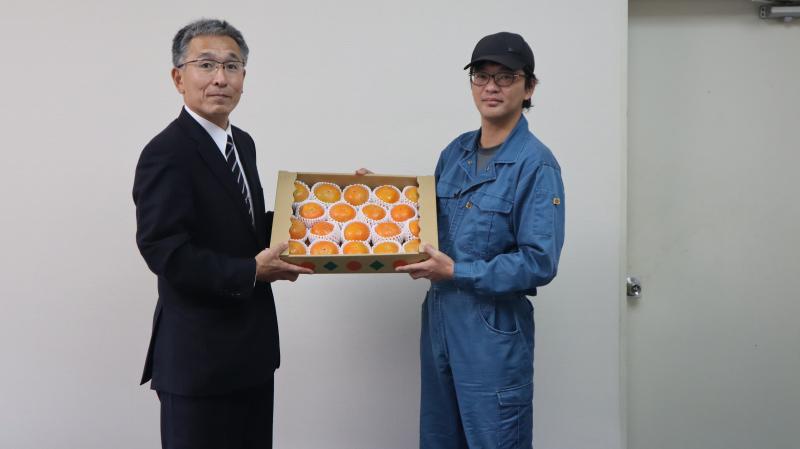 また、福岡県議会議員をされている林泰輔様より朝倉市特産富有柿をいただきました。生徒・教職員で分けました。大きくてとても甘くて、とてもおいしい柿でした。ありがとうございました。