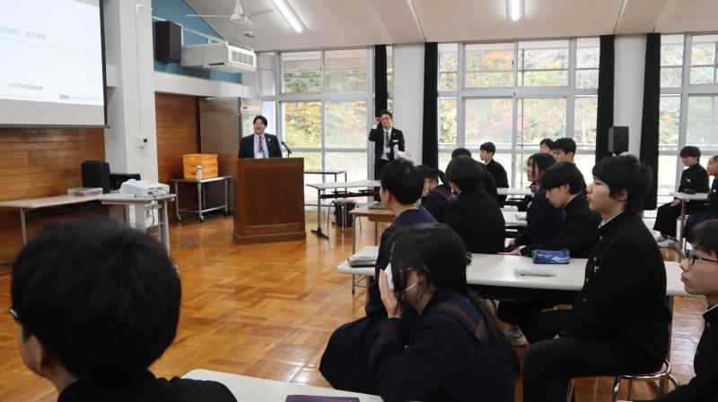 能登町選挙管理委員会と能登町総務課の皆様をお迎えして、主権者教育が3年生を対象に行われました。