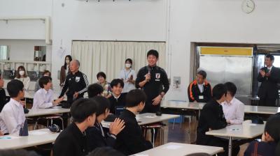21日、石川県サッカー協会のはからいで、サッカー日本代表 森保 一 監督が、本校を訪問し、生徒に、チャレンジすることの大切さ、今を大切に頑張ってほしいことなど、貴重なお話をしてくれました。短い時間でしたが、楽しい時間を過ごすことができました。