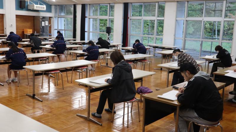 11月2日の文化祭に向けて、24日に合唱中間発表を行いました。震災により体育館が使用できないためランチルームで行いました。本番は柳田小学校体育館を借りて行います。それに、今年は輪島市立東陽中学校と合同で開催します。みなさん文化祭を見に来てください。お願いします。