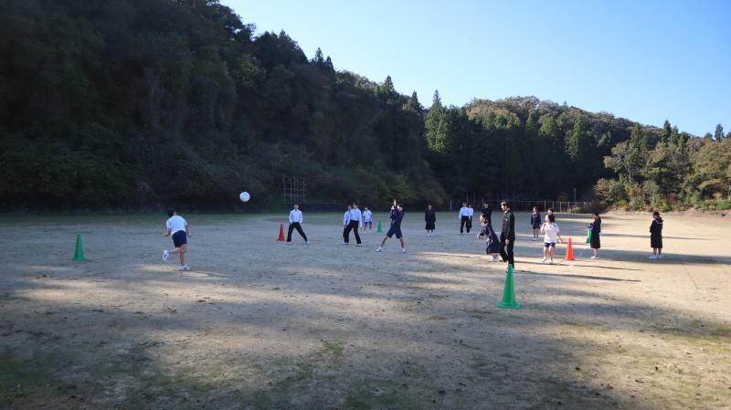 生徒会運動委員会が企画・運営して昼休みにミニスポーツ大会を行っています。小春日和になった今日の昼休みは、グランドでドッチボールを行いました。生徒たちは楽しそうに競技をしていました。