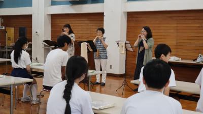 6日、NPO法人日本コカリナ協会 関谷さん、岩田さん、滝川さんが本校を訪れて、トートバックの贈呈式が行われました。このトートバックは岩手県陸前高田市気仙町にある「奇跡の一本松」の木からできているそうです。一つひとつが手作りでとてもあたたかみのある使いやすいバックで生徒たちはよろこんでいました。また、コカリナ協会の皆さんによるコカリナの演奏会もありました。やさしい音色でした。