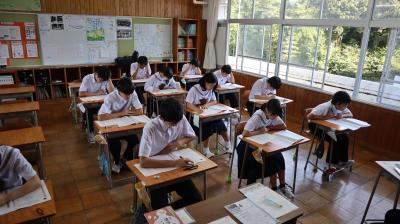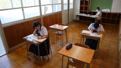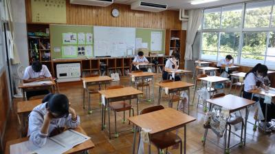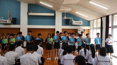 心配された台風10号の影響もなく,長い夏休みを終えて,みんな元気よく登校してくれました。1限目に,始業式が行われました。全校生徒で校歌を斉唱し,校長先生のお話,その後,県吹奏楽コンクール,サイエンスチャレンジの納賞と校内スペリングコンテストの表彰を行いました。みんなよく頑張りました。