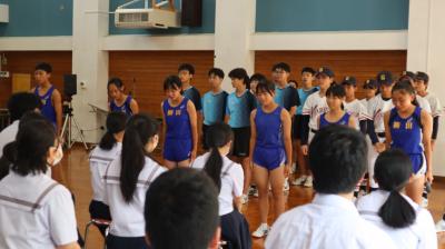 27日、全能登新人大会に出場する野球部、卓球部、陸上部の壮行会が行われました。