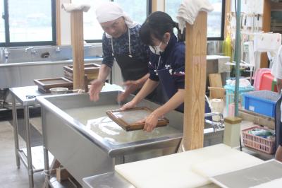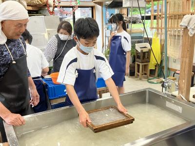 28日,1年生が、久田和紙づくりを体験しました。小間生公民館の皆さんや「みわ会」の皆さんのご指導のもと、行燈用の和紙2枚としおりを作成しました。地域に伝わる伝統工芸に触れることができる貴重な体験です。子どもたちは、緊張しながらも、巧みな手さばきで上手に作ることができました。仕上がりが楽しみです!