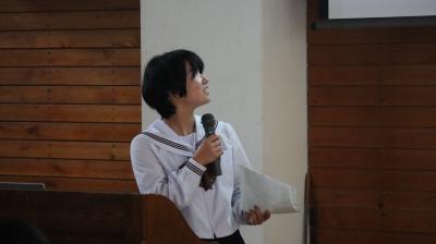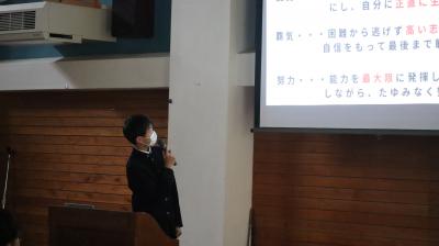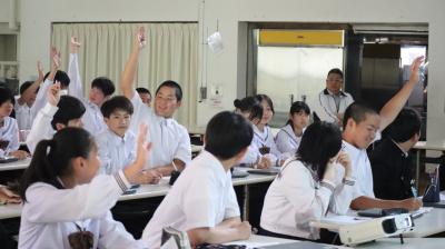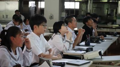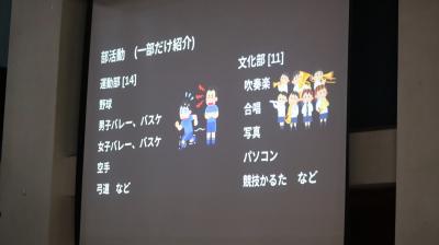 総合的な学習の時間に3年生が県内の高校の中から,自分が調べたい高校についてまとめ,2年生にプレゼン発表を行いました。2年生は熱心に発表を聞いていました。3年生はもちろん,2年生にとっても進路について考えるよい機会になったようです。