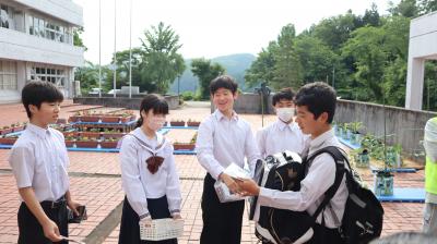 先日,能登町の姉妹都市である千葉県流山市にある南流山中学校, おおぐろの森中学校の生徒の皆さんの応援メッセージが本校に届きました。皆さんが,私たちを心配し応援してくれていることがメッセージを通して強く伝わってきました。心温まるメッセージに元気をいただいています。また,生徒の皆さんが中心となって募金活動もしてくれたと聞いています。大切に,大切に使わせていただきます。皆さんのご支援のおかげて,日常の生活にもどりつつあります。本当にありがとうございました。