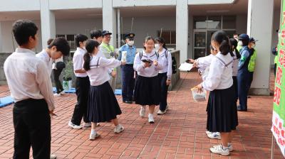6月9日はロックの日。この日にちなんで,珠洲警察署,能登防犯協会,能登少年補導員連絡協議会,柳田地区防犯協会,上町地区防犯協会,岩井戸地区防犯協会の皆さんと合同で,自転車を置く場合は必ず鍵をかけるように呼びかけました。併せて,自転車の乗るときはヘルメット着用や出かけるときは家のカギもしっかりとかけるように呼びかけました。