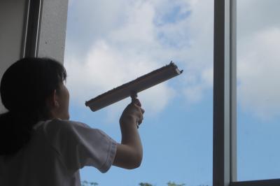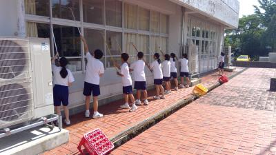 ピカピカ大作戦として昨日,1年生が校舎の窓をきれいにしてくれました。1年生ありがとうございました。窓がきれいすぎて野鳥が窓にぶつかるかも。