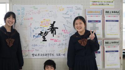 宮城県立涌谷高等学校の生徒の皆さんから応援メッセージをいただきました。生徒の中には,避難所に生活している人,家がつぶれ車庫に生活している人,親元を離れ2次避難している人など,まだたくさんいます。メッセージにあるように地震に負けず希望をもってみんな生活しています。湧谷高等学校の生徒の皆さんからのメッセージに勇気・元気をいただきました。本当にありがとうございました。