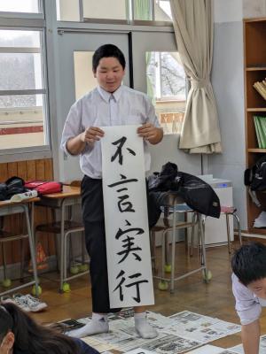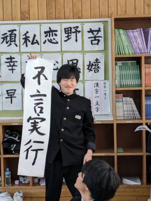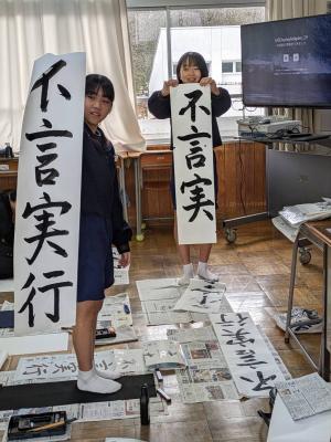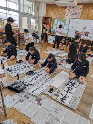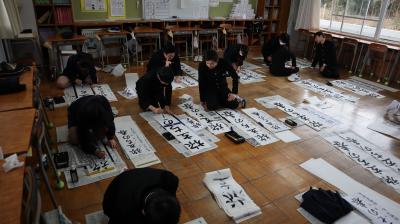 1月9日に予定していた書き初め大会を約1か月遅れで1年生が行いました。うまく書けたかな?