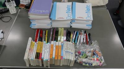 宮城県塩竃市立第一中学校の皆さんから心温まる応援メッセージをいただきました。また,千葉県流山市立南部中学校からは本や文房具が届きました。大切に使わせていただきます。皆さんから元気をいただきました。本当にありがとうございました。