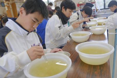 久田和紙で卒業証書をつくるために5日小間生公民館へ行き,みわ会の皆さんのご指導を受けながら不純物を取り除く塵取りをしました。なかなか根気のいる作業でした。次回(1月16日)はいよいよ紙すきを行います。