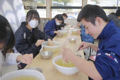 最後に,みんなで作ったお餅はとても美味しかったようで,給食の後にも関わらず何個も食べていました。