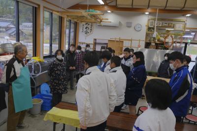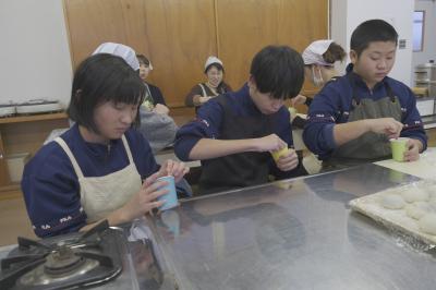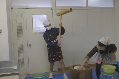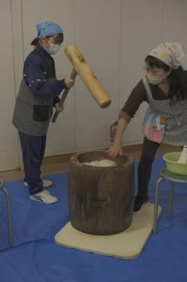 PTA給食部の保護者の皆さんと3年生が,12日餅つきを行いました。ほとんどの生徒が臼と杵を使って餅を作った経験がなく,みんなよろこんで作っていました。