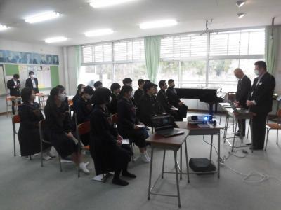 能登町と姉妹都市を結んでいる宮崎県小林市の教育委員会の皆様が,21日柳田中学校を訪問されました。