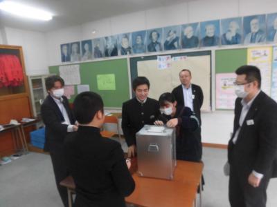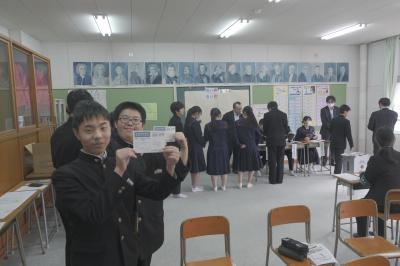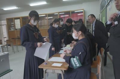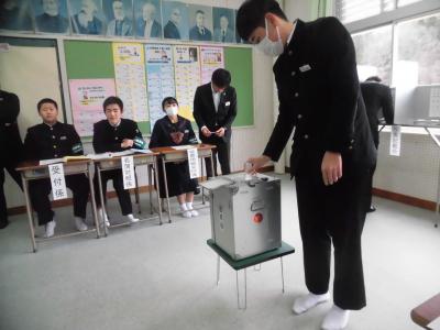 能登町有権者育成事業の一環として能登町選挙管理委員会のご協力のもと,3年生が模擬投票を行いました。