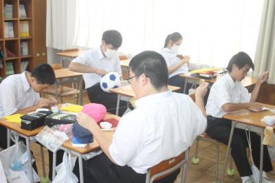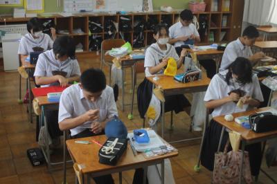 3年生は家庭科の時間に「幼児のおもちゃ」という単元で幼児向けのおもちゃを作りました。なかなかみなさん上手に制作していました。