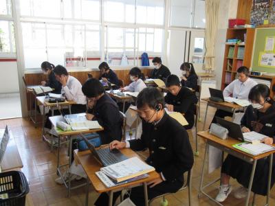 18日,3年生がスパトレ(オンライン英語授業)を行いました。個別にネイティブスピーカーに英語の授業をしてもらいました。楽しく,真剣に英語の勉強をしていました。