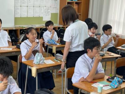 本日(30日)5限目に1年生で歯みがき指導を行いました!