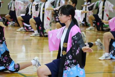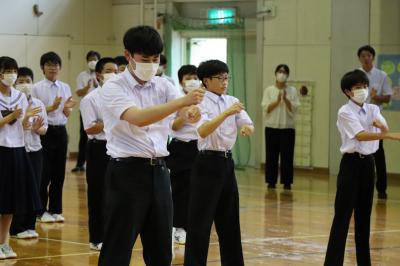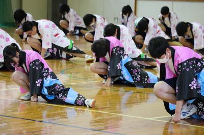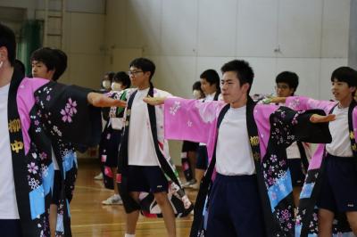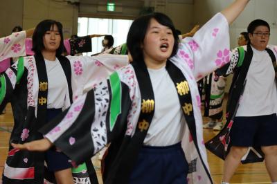 本校では体育祭(9月16日)で赤団,白団に分かれて「よさこい」を披露しています。それに向けての1回目の練習が7月11日に行われました。2・3年生がよさこいを1年生に披露し,その後,1年生に教えていました。今から体育祭がとても楽しみです。