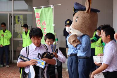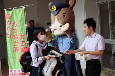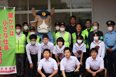 6月9日は「ロックの日」です。珠洲警察署能登庁舎,能登町防犯協会,柳田中生徒会の皆さんで自転車盗難防止のキャンペーンを行いました。自転車に限らず大切なものはしっかり鍵をかけて,防犯に努めたいですね。『鍵かけは小さな仕事,大きな防犯』
