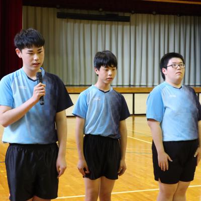 17日(土)・18日(日)に開催される能登地区大会(県体予選)に出場する野球部・卓球部と24日(土)・25日(日)に開催される石川県陸上競技大会に出場する陸上部の激励会が行われました。3年生にとっては最後になるかもしれない大切な大会です。野球部・陸上部は,これまで練習した成果をだして県体出場できるように頑張ってほしいです。また,県陸に出場する陸上部は北信越大会を目指して頑張ってほしいです。