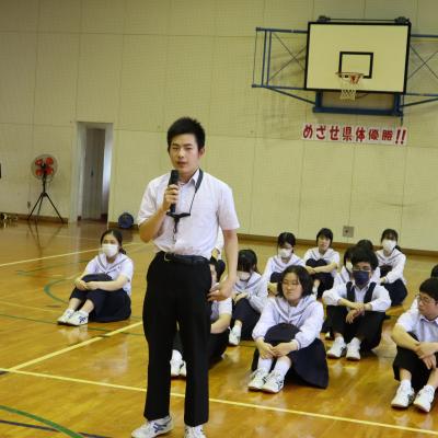 5日から16日まで本校の卒業生である勘平知実さんが教育実習を行っています。2週間という短い期間ですが,頑張ってください。