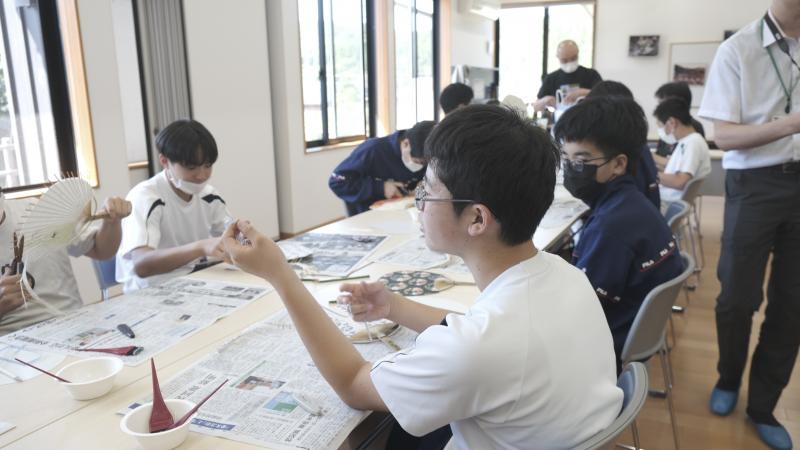 2年生が小間生公民館でうちわ作り体験を行いました。久田和紙を使ったうちわ作りということで、みわ会の方の説明を聞きながら慎重に作業を進めていました。