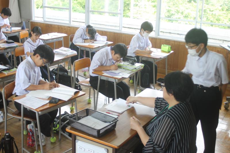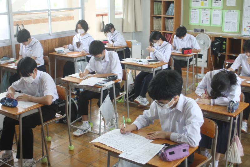 7月3日・4日に期末テストがあります。1週間前の今日から放課後30分間試験勉強をします。今回のテストでは技能教科のテストも行われます。9教科あるので計画的に勉強をして,少しでも成績が伸びるように頑張ってほしいですね!