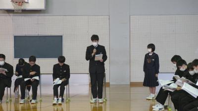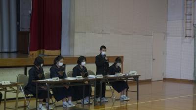 前期活動方針及び計画案が執行部,各委員会(文化委員会,保健委員会,美化委員会,放送委員会,運動委員会)から提案され,質問や意見が生徒からたくさん出ました。会長,各委員長は質問・意見に対してしっかりと回答していました。これからの生徒会活動がとても楽しみです。
