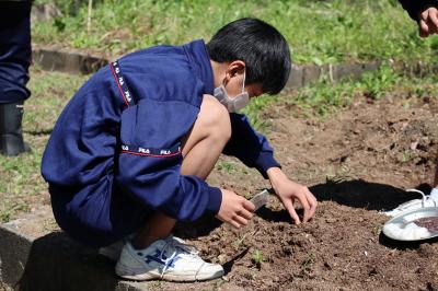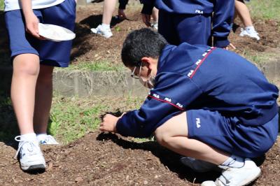 キュウリ,カブ,レタスの5種類植えました。上手く成長して,美味しい野菜が成ってくれるといいですね。生徒達はとても楽しみにしていました。