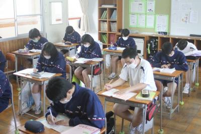 29日(月)・30日(火)に中間テストが行われています。1週間前から部活度はテスト休み,放課後テスト勉強を行ってきました。また,家庭ではメディコン(メディアコントロール)の取組も行ってきました。がんばってきた成果がテストの成績にでてくるといいですね。がんばれ!