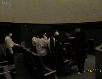 2月17日、3年生は理科の学習の一環で満天星を訪れました。プラネタリウムで専門職員の解説を聞き、天体学習を進めました。生徒は何度もプラネタリウムを訪問しているとのことでしたが、さらに学習内容が深まっていったようです。